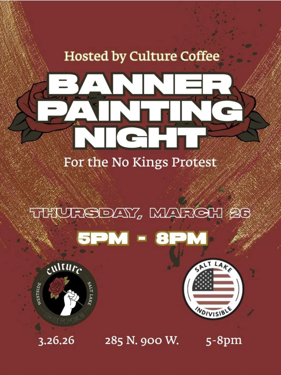 No Kings SLC Banner & Sign Painting Night | 5-8 PM @ Culture Coffee, 285 N 900 W, SLC.