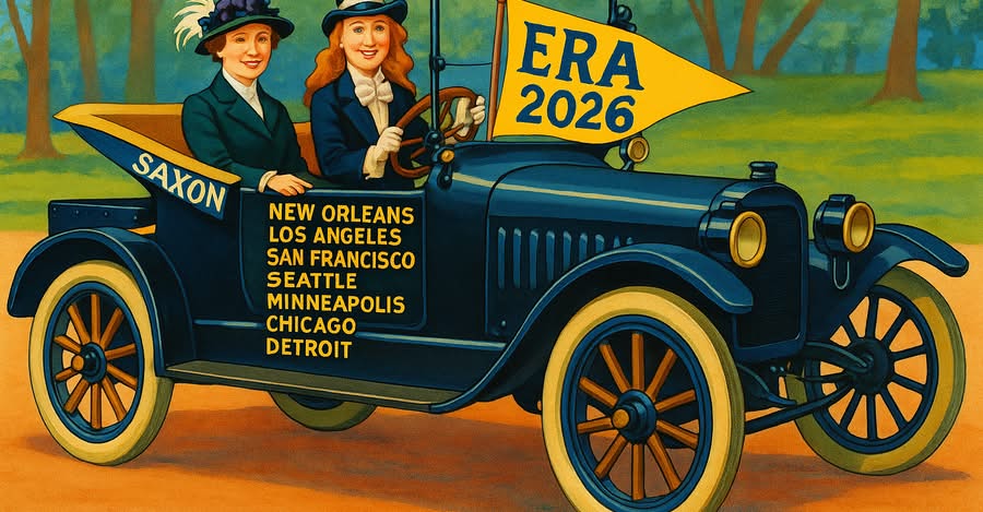 Driving the Vote for Equality starts March 1, 2026. "More than 100 years ago, two women undertook an epic road trip in support of women’s suffrage. In 2026, ERA NOW and other supporting groups are determined to follow in their tracks in support of full constitutional equality. During March 2026, Women's History Month, ERA NOW will kick off a 10,500-mile tour called Driving the Vote for Equality. We will travel from the east to the west coasts, starting and ending in New York City." To sign the ERA petition, visit sign4era.org.