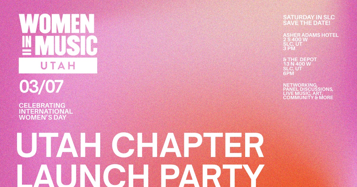 Women In Music: Utah Chapter Launch Party | 3-10 PM @ Asher Adama & The Depot, 13 N 400 W, SLC. "Join us for inspiring panel discussions with 6 women in the industry! 3 PM | ALL AGES. Free Coffee. Join us after the panel discussions at The Depot for LIVE performances by Eternal Loser, Detzany and Anna Beck @ 5:30 PM. All ages. For $10 tickets for the show, click here.