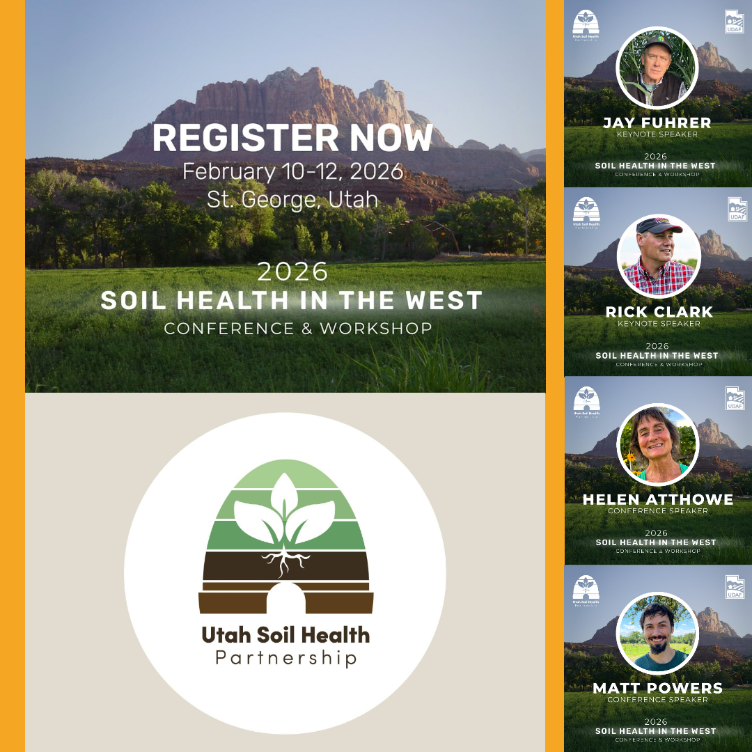 The Soil Health in the West Conference, St. George, Utah. "The 2026 Conference is the place to learn about soil care & testing, soil health in crop production, and regenerative grazing management. In 2024, we focused on grazing management with supplementary tracks on crop production, and this year we are doing the reverse: we're hosting expert speakers on soil health-focused crop production, with a robust supplementary track for grazing topics."