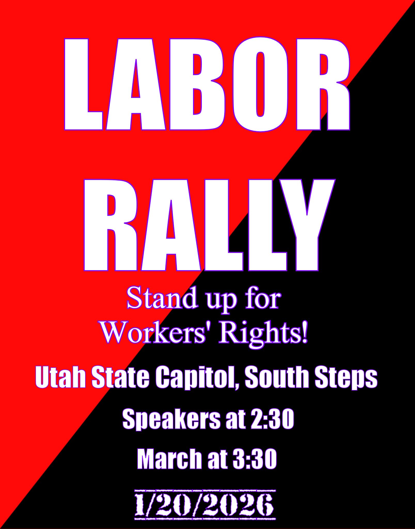 Labor Rally to Stand Up for Workers' Rights | 2:30 PM @ Utah State Capitol, 350 N State St, SLC. Speakers at 2:30 PM, March at 3:30 PM.