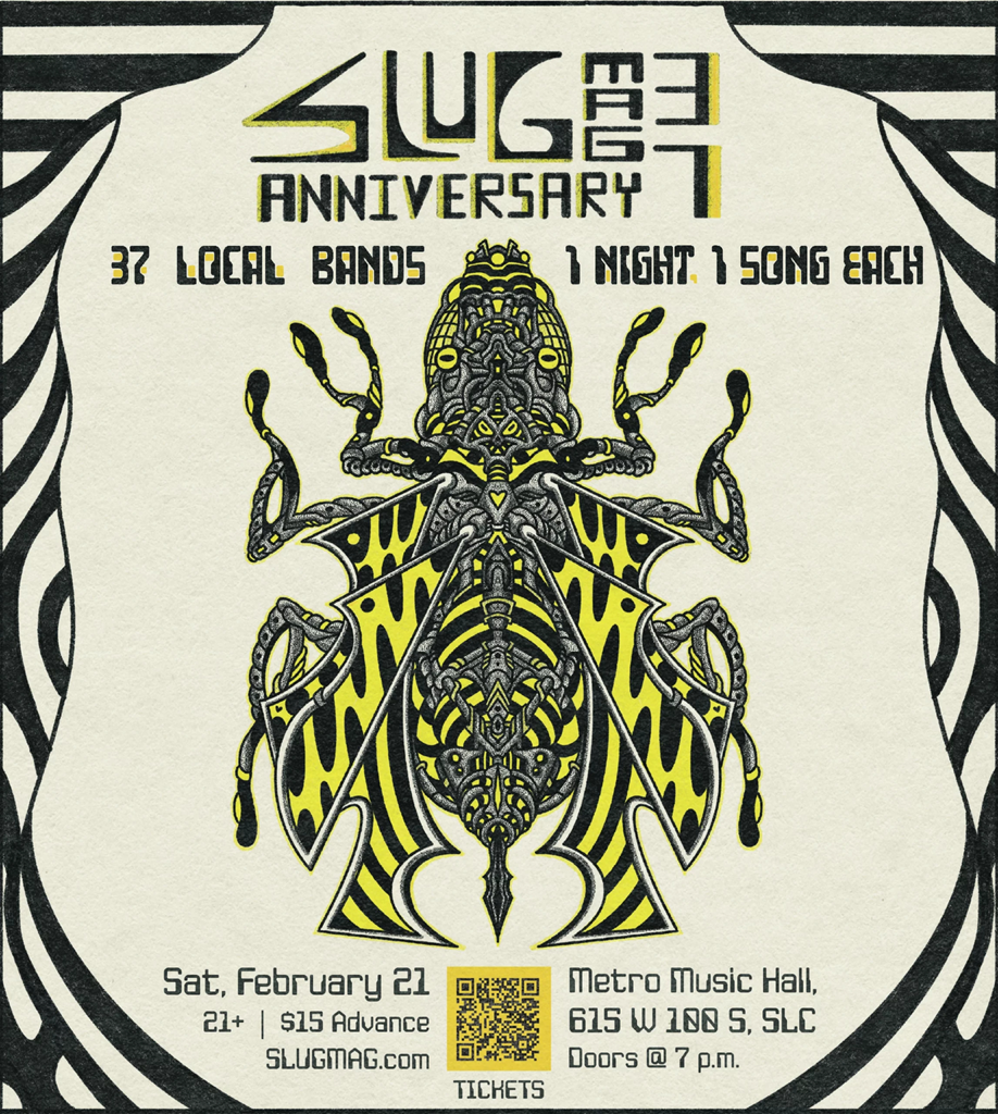 SLUG Magazine’s 37th Anniversary Party | Doors open at 7 PM @ Metro Music Hall (21+), 615 W 100 S, SLC. "Be a part of SLUG Mag’s 37th Anniversary Party! 1 Night, 37 Local Bands, 1 Song Each." For tickets, click here.
