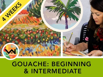Gouache is one of the most versatile and fun painting mediums that seems to be becoming more and more popular in recent years. Gouache (pronounced gwash) is an opaque water-based medium that allows one to work from dark to light, which makes a lot of sense to oil painters. However, it’s much less messy and can be easily used for preparatory studies, plein air work, travel, and more. Watercolorists appreciate the opaque quality of gouache and many have added this medium to their arsenal. In this course, we will learn how to use gouache by exploring the ins-and-outs of this medium. Topics will include the pros and cons of wet vs dry painting, surface exploration, edges, tiling, color and color mixing, paint consistency, palette options, supplies, and more. We will focus on creating a variety of small paintings as we learn how to paint with gouache. Beginners are welcome to join and will be given some beginning lessons before jumping into more complex paintings. On-going students will be presented with new projects and lessons. This class is taught in English. No class May 7th! PRICE: $99 for 4 Week Class. DIFFICULTY REGISTERING? Please call our main office for assistance! 801.474.3796