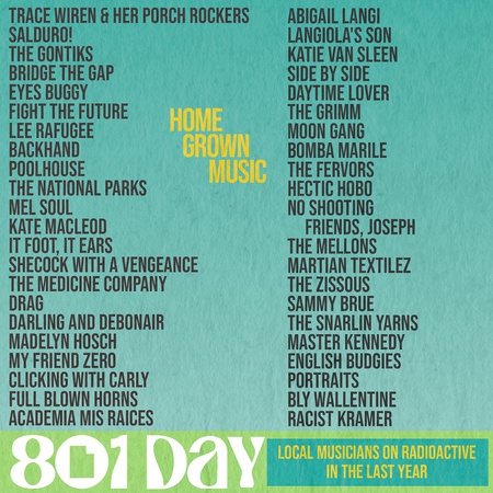 Thanks, Connor and Valene MC, for making this ↑ cool graphic ↑ with all the names of bands that have played live on RadioACTive since 801 Day last year!