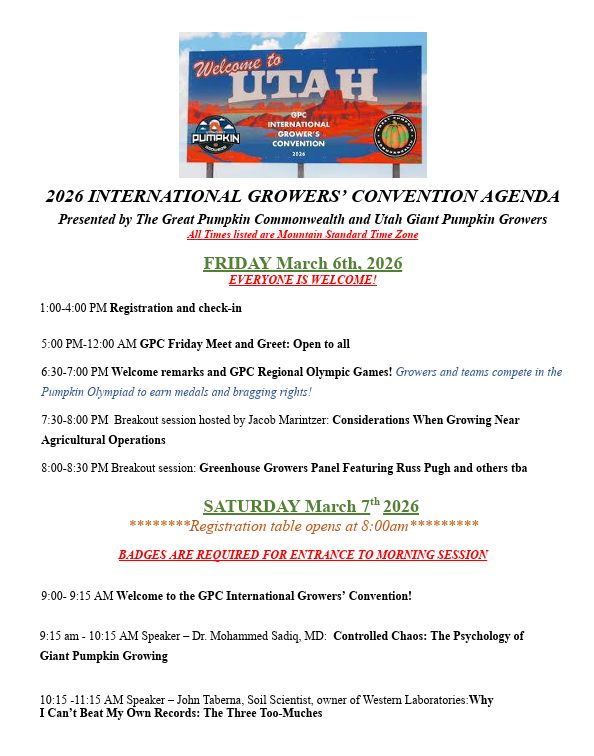 • GPC International Grower's Convention in SLC. Early bird registration ends Jan. 31. To register, click here. "Registration is now open for the 2026 International Growers Convention in Salt Lake City, Utah! Join us from Friday, March 6th, through Sunday, March 8th, for an unforgettable weekend of learning, networking, and celebration." A late registration fee will apply after February 1.