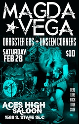 Magda-Vega, Dragster Gas, and Unseen Corners live and loud at Aces High Saloon! 9 pm | $10